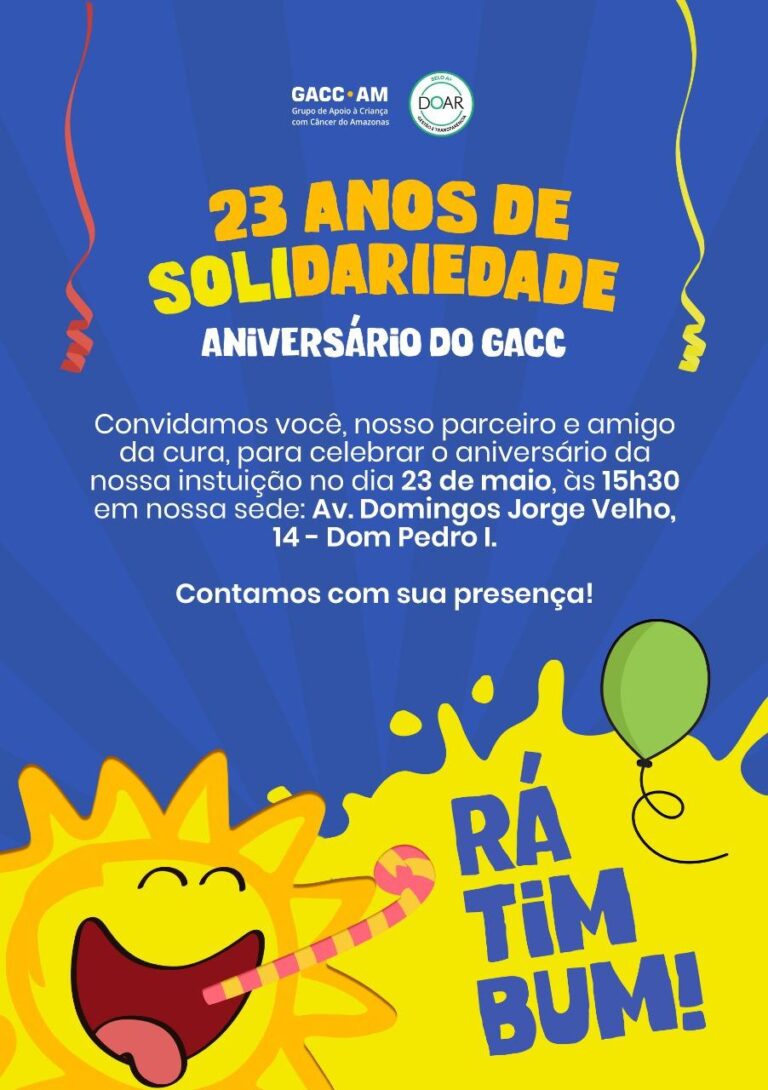 O Grupo de Apoio a Criança com câncer do Amazonas comemora seu 23º aniversário no dia 23 de maio Atuante na região norte oferecendo acolhimento e humanização nos atendimentos ofertados a