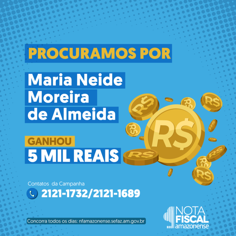 O sorteio mensal da Campanha Nota Fiscal Amazonense (NFA) acontecerá na próxima quarta-feira (15/06), às 13h, após o “Jornal do Meio-Dia”, na TV Encontro das Águas, canal 2.1 da TV aberta, e