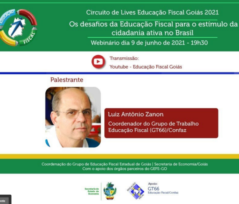 Nesta quarta-feira, 9 de junho, a partir de 19h30, o Circuito de Lives do Programa de Educação Fiscal da Secretaria da Economia de Goiás recebe como convidado, Luiz Antônio Zanon, atual coordenador
