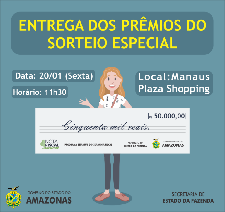 O Governo do Estado do Amazonas, por meio da Secretaria de Estado da Fazenda (Sefaz-Am) realizará nesta terça-feira, dia 7, no Portal do Flagrante,www.portalflagrante.com.br, às 11h, o sorteio mensal da Campanha Nota