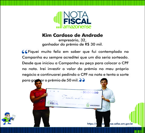 Fiquei muito feliz em saber que fui contemplado na Campanha eu sempre acreditei que um dia seria sorteado. Desde que iniciou a Campanha eu peço para colocar o CPF na nota. Irei