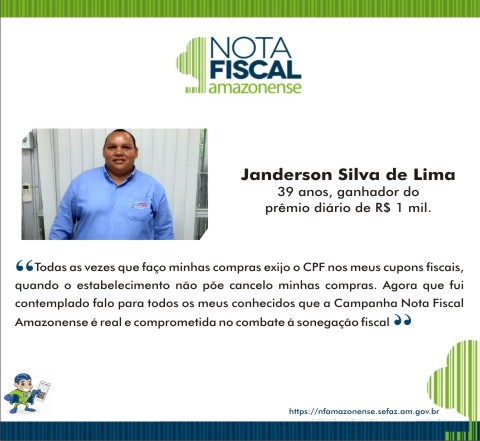 “Sou a favor da luta contra a sonegação fiscal, por isso participo da Campanha Nota Fiscal Amazonense desde o início, inserindo o meu CPF nas minhas notas fiscais. Sempre convido os meus