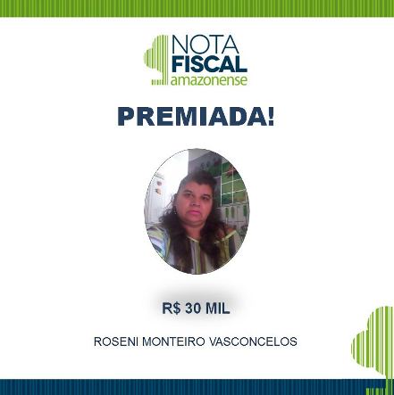 A dona de casa Roseni Monteiro Vasconcelos, 48 anos, ganhou o prêmio de R$ 30 mil, no primeiro sorteio especial da Campanha Nota Fiscal Amazonense, realizado na última segunda-feira, 11, no auditório