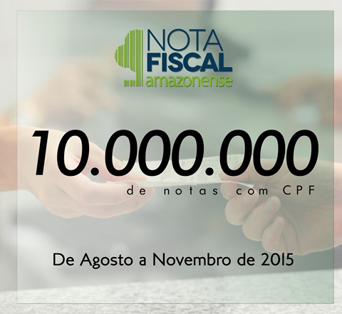 A poucos dias de completar quatro meses, a campanha Nota Fiscal Amazonense acaba de alcançar a marca de 10 milhões de notas fiscais eletrônicas registradas com CPFs. Cerca de 174 mil consumidores
