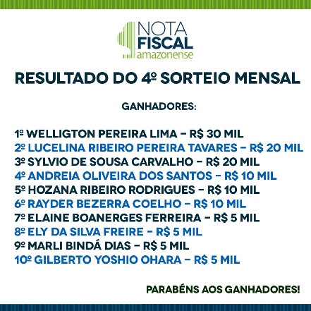 O quarto sorteio mensal da campanha Nota Fiscal Amazonense aconteceu nesta quinta-feira, 10, no auditório da Secretaria de Estado da Fazenda. Concorreram aos 20 prêmios 141.651 consumidores e entidades sociais. No total,