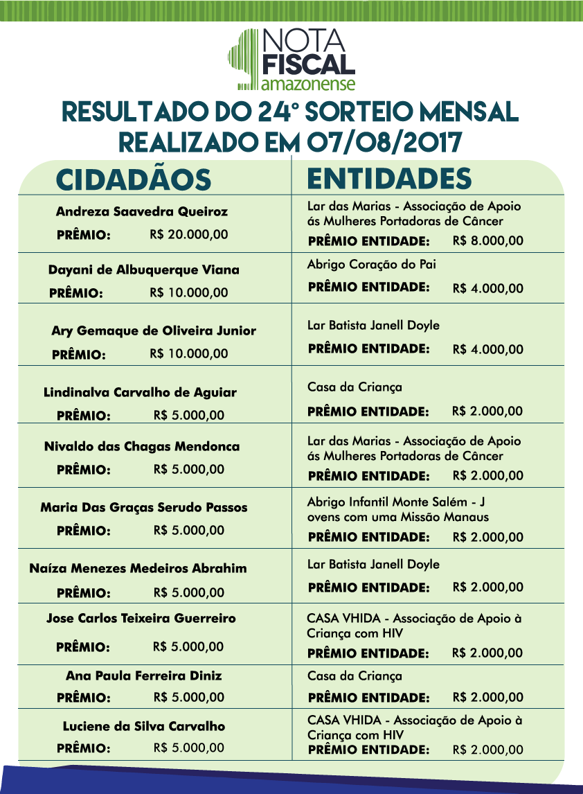 RESULTADO DO 24º SORTEIO DA NOTA FISCAL AMAZONENSE