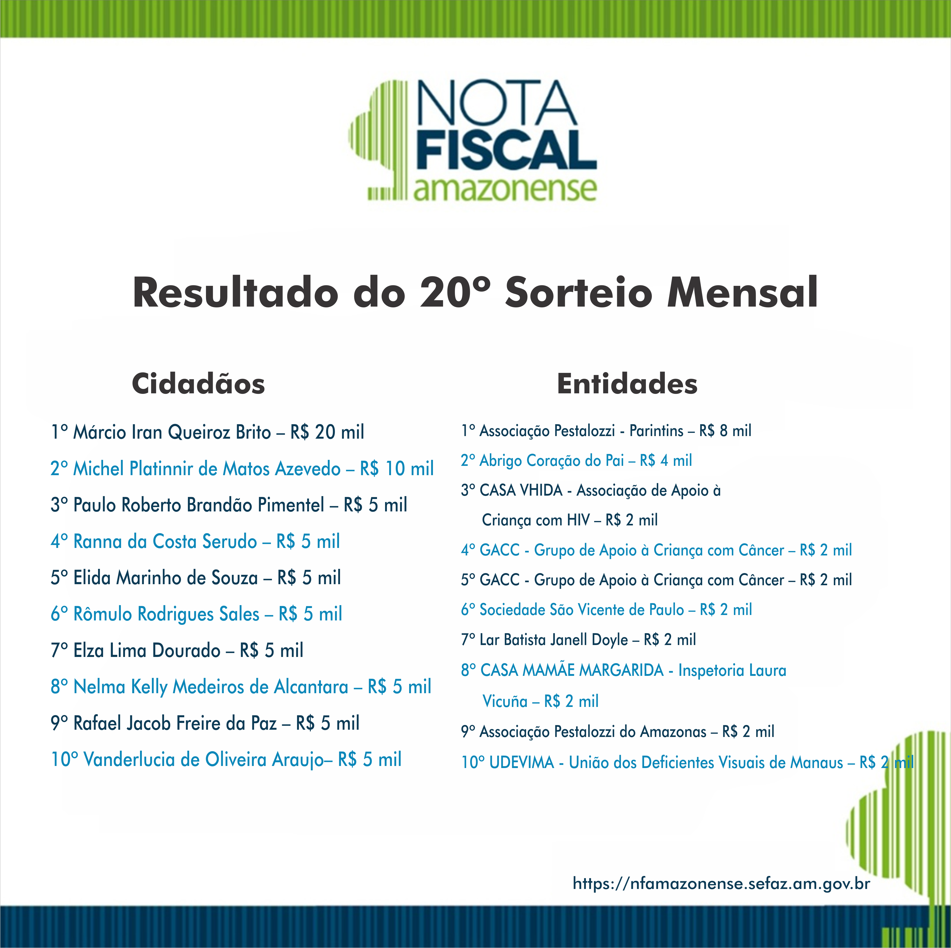 Home » Saíram os ganhadores do 20º Sorteio Mensal da Campanha Nota Fiscal Amazonense.